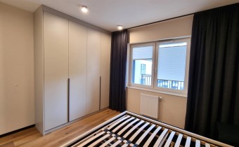 SYPIALNIA: łóżko podwójne z materacem, 2 szafki nocne, duża szafa w zabudowie, zasłony, roletki okienne - plisy,ściany gładzie gipsowe