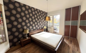 - SYPIALNIA GŁÓWNA Z BALKONEM: 13,5 m2, łóżko podwójne z materacem i nakryciem, 2 szafki nocne + 2 lampki nocne, komoda, szafa wbudowana, z sypialni wyjście na balkon,