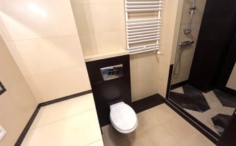 - OSOBNE WC: 1,2 m2, sedes podwieszany, umywalka z lustrem,