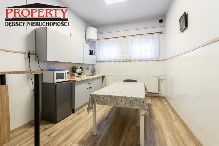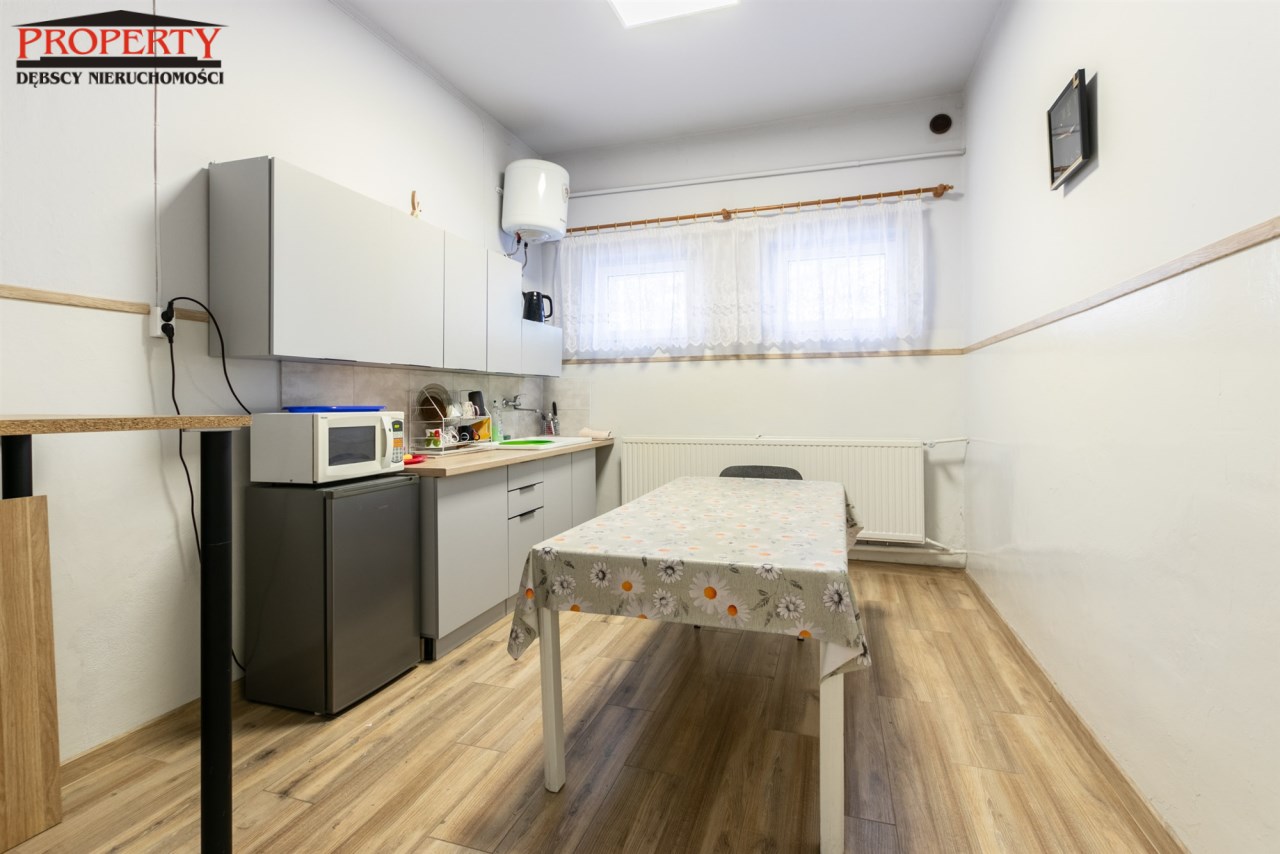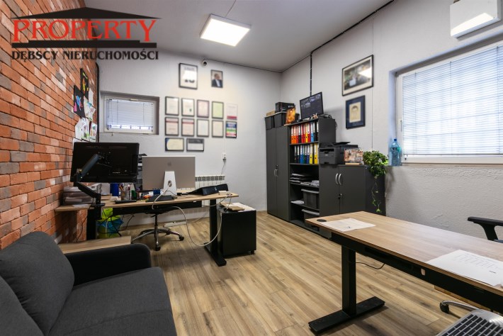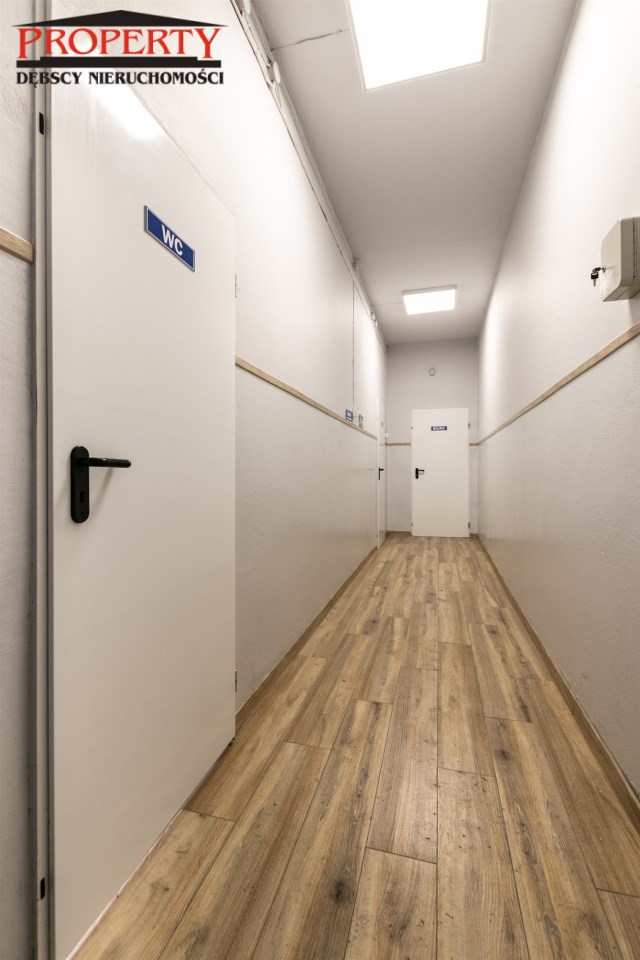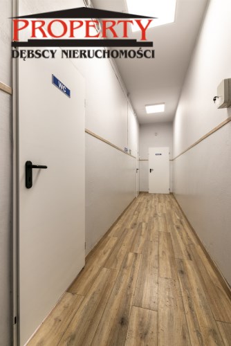 Budynek ten jest murowany, niepodpiwniczony. Okna PCV, posadzki wzmocnione,betonowe, dobrze doświetlony, wyposażony w centralne ogrzewanie, alarm, czujki dymne.