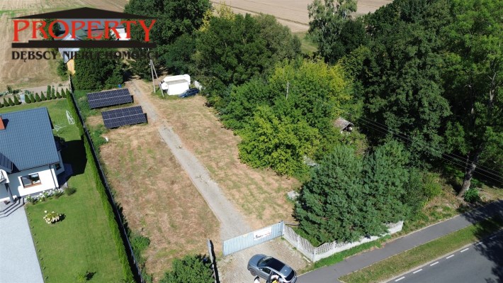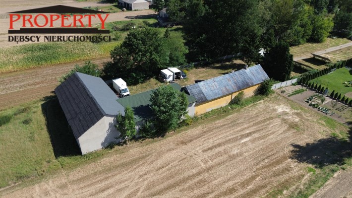 Duża działka 4979m2 z bezpośrednim dostępem do drogi publicznej. Działka ogrodzona, z duża bramą i utwardzonym podjazdem do budynków.